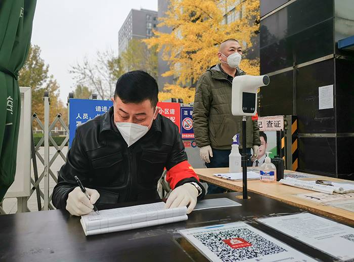 太阳集团装备公司职工李龙在香河园街道西坝河中里社区核对流调信息