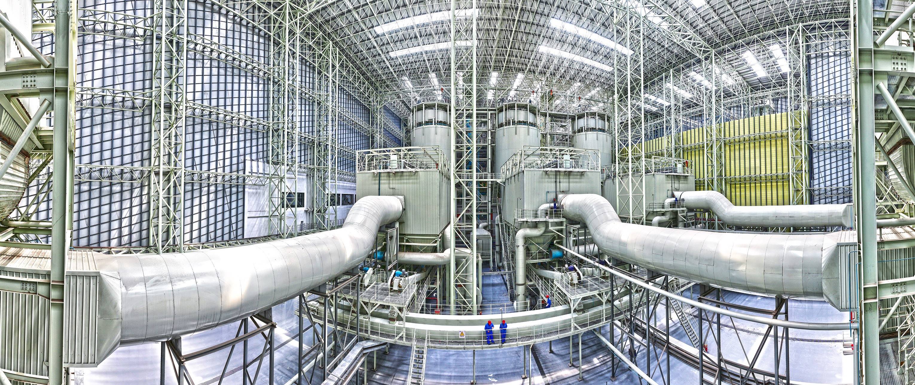 ▲生活垃圾焚烧发电厂烟气间